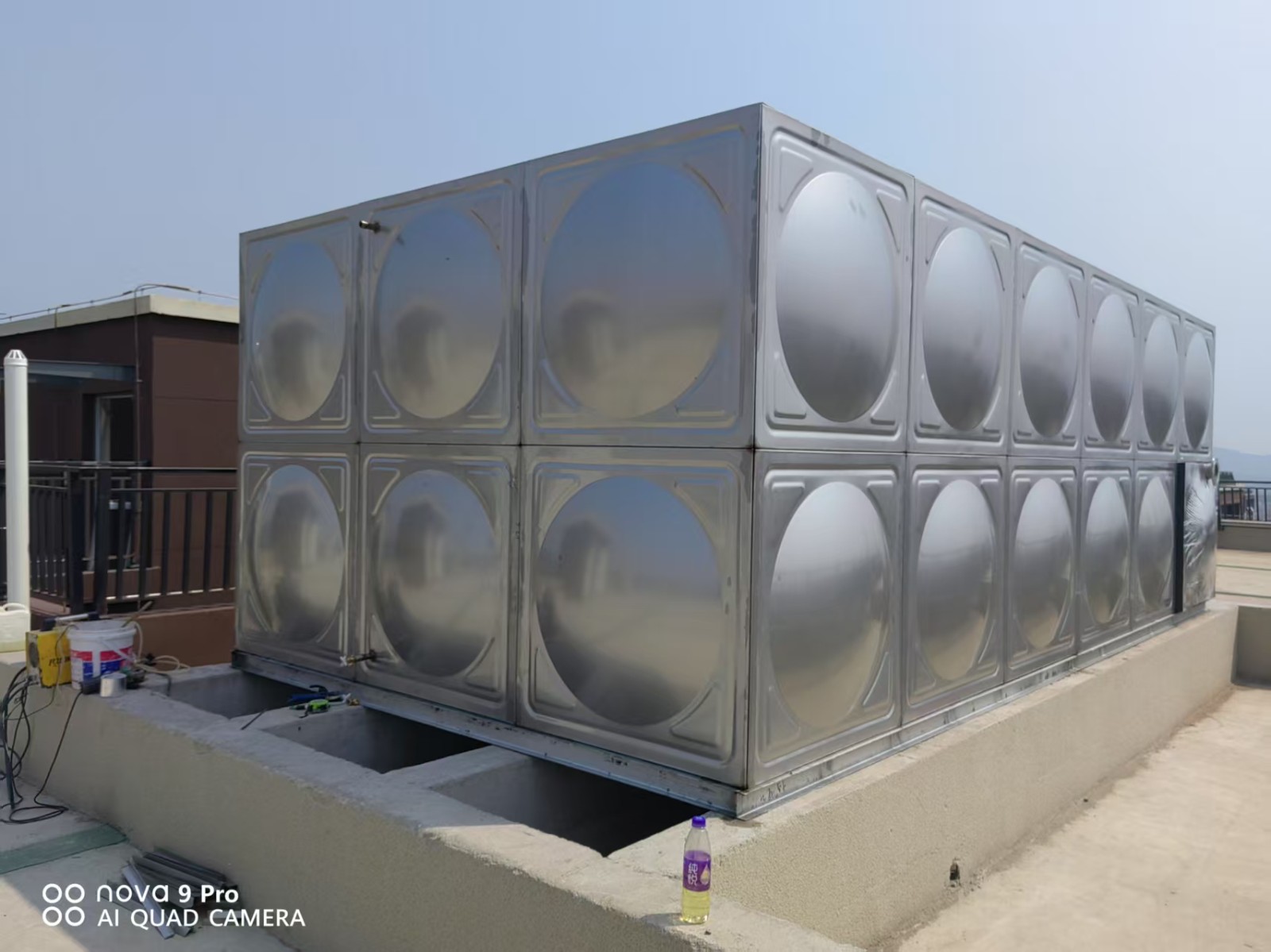 我廠承接的安徽馬鞍山市單溪書苑高位消防水箱已安裝完畢。不銹鋼水箱具有外形美觀、重量輕、強度高、耐腐蝕、耐高溫、水質(zhì)清潔,永不生青苔,水質(zhì)無二次污染,安裝方便,便干清洗等諸多優(yōu)點。
