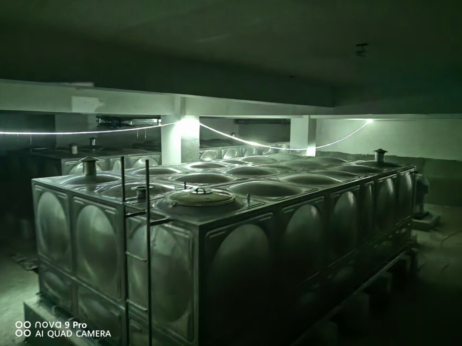 我廠承接的西安市華茂府二期的給水泵房水箱已安裝完畢。不銹鋼焊接水箱,是指容器本體用不銹鋼板沖壓帶一定凹凸形狀,使之鋼度大大提高,再焊接成薄殼箱體的新型水箱,是目前國(guó)內(nèi)較先進(jìn)、較美觀、較適用的水箱,其結(jié)構(gòu)精巧、合理、先進(jìn),用材省,可在民用及工業(yè)建筑中廣泛采用,是儲(chǔ)存、調(diào)節(jié)用水的理想設(shè)備。